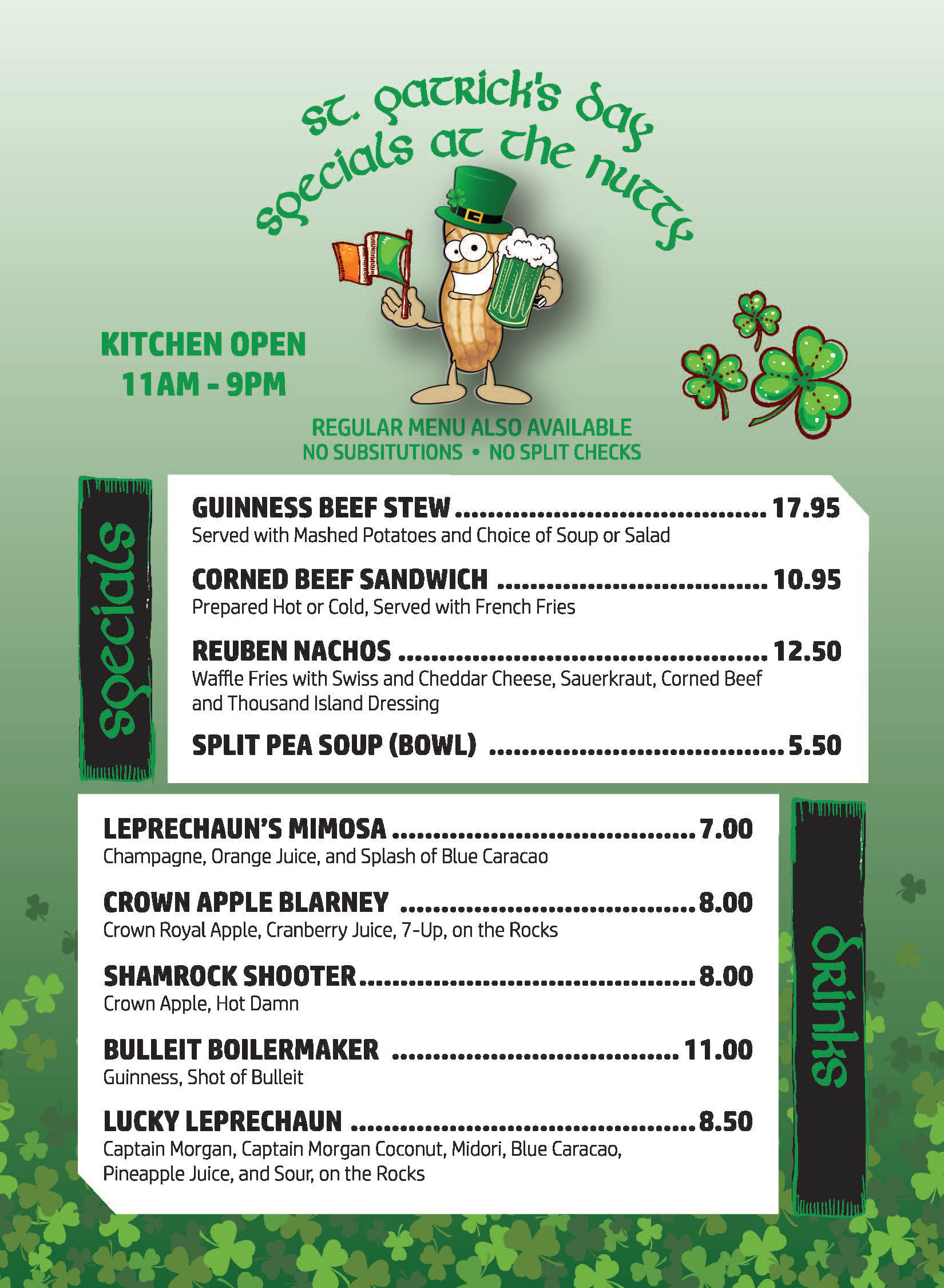 St. Patty's Day Special Menu